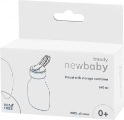 Recipientul practic din silicon pentru lapte matern NEW BABY îmbină designul minimalist, materialul sigur, fără BPA și capacitatea de 240 ml pentru utilizarea zilnică. Datorită corpului moale și flexibil, capacului cu filet rezistent și curelei pentru transport ușor, este ideal pentru depozitarea, dozarea și transportul laptelui și al piureurilor pentru bebeluși.