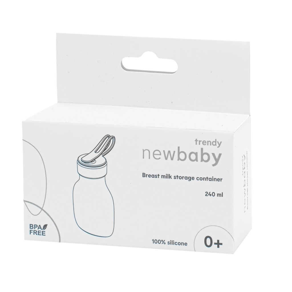 Recipientul din silicon pentru lapte matern NEW BABY din gama Trendy este conceput pentru depozitarea confortabilă și igienică a laptelui încă de la naștere. Corpul mat, parțial translucid, cu scară gradată în ml și oz permite dozarea precisă, în timp ce capacului filetat striat cu curea previne scurgerile și ușurează transportul.