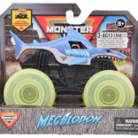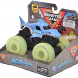 Caroserie detaliată cu înotătoare și dinți, licență oficială MONSTER JAM și culori autentice ca în arena reală.