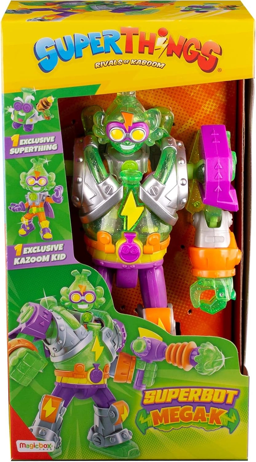 - 1× robot Mega‑K, 1× Kazoom Kid exclusiv, 1× figurină SuperThing exclusivă, 1× armă Kazoom
