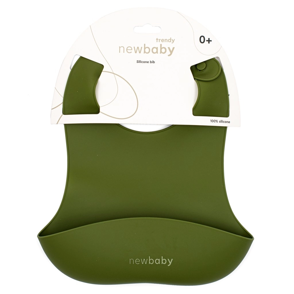 Descoperă confortul și curățenia la fiecare masă. Baveta din silicon NEW BABY este moale, sigură și plăcută la atingere. Datorită curelei reglabile, se potrivește perfect bebelușilor și copiilor mici, iar eleganta culoare verde măsliniu se potrivește oricărei case moderne.