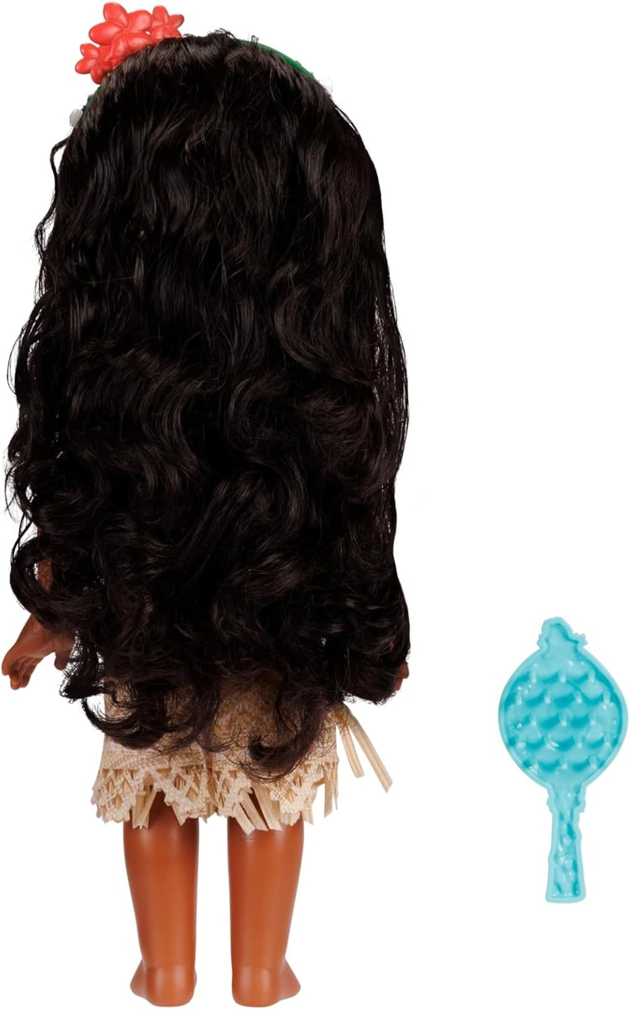 Păpușa inspirată de filmul Disney VAiANA (MOANA) aduce copiilor o experiență autentică din povestea preferată. Părul lung și ondulat poate fi aranjat cu pieptenul inclus, ochii expresivi și ținuta insulară oferă păpușii un aspect unic. Datorită mâinilor și picioarelor articulate poate adopta cu ușurință diverse poziții pentru un storytelling creativ.
