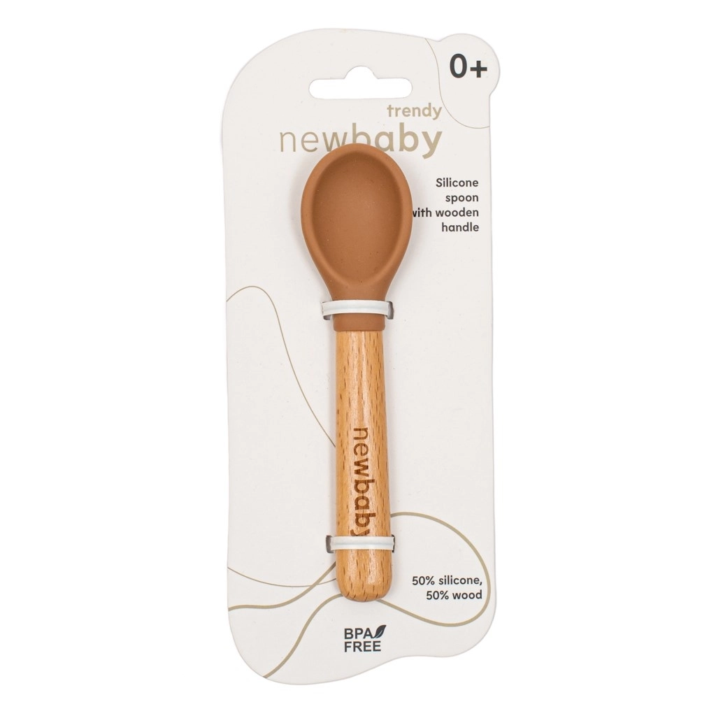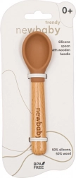 Lingurița pentru copii NEW BABY, practică și stilată, combină lemnul natural și siliconul moale fără BPA pentru hrănire delicată încă de la vârste fragede. Mânerul ergonomic din lemn se potrivește perfect în mână, iar partea din silicon fină este blândă cu gingiile sensibile. Include toc igienic pentru depozitare în siguranță acasă și în călătorii.
