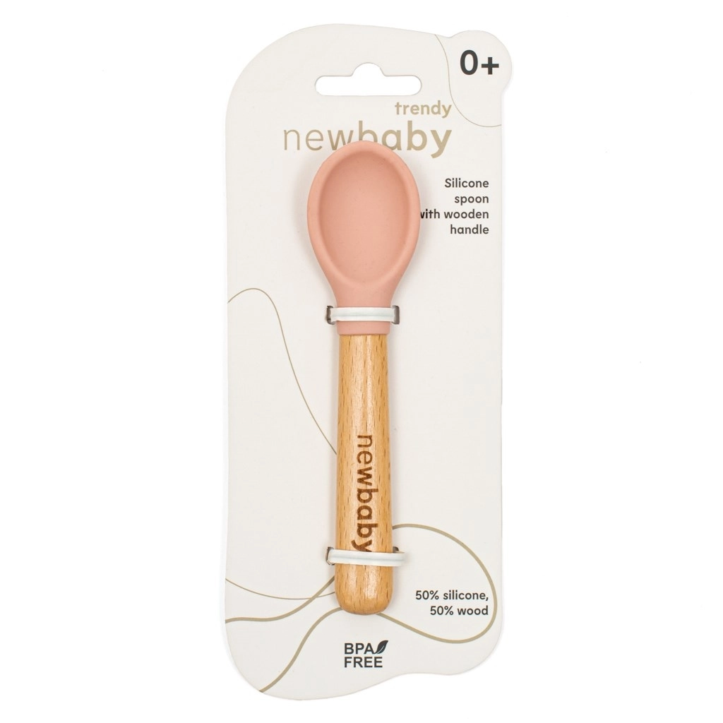 Descoperiți combinația dintre designul modern și funcționalitate. Lingurița din silicon pentru copii NEW BABY, de culoare roz, este fabricată din silicon de cea mai înaltă calitate, fără BPA și completată cu un mâner din lemn cu gravură elegantă. Datorită suprafeței fine, este blândă cu gingiile sensibile și confortabilă pentru utilizarea zilnică.