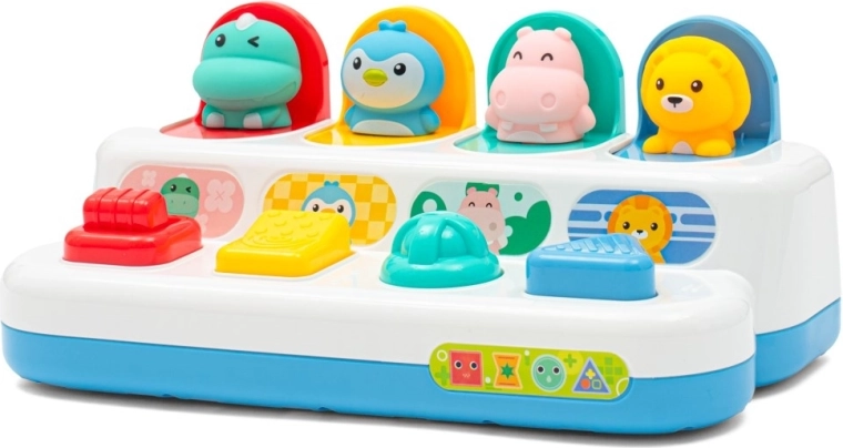 Descoperă bucuria învățării cu jucăria interactivă Baby Mix Peekaboo, care îi distrează pe cei mici și, în același timp, îi dezvoltă. Datorită diferitelor elemente de control – buton, cursor glisant, comutator și buton rotativ – copiii exersează motricitatea fină și învață principiul cauză–efect. Jucăria, cu culori vii, animăluțe adorabile și construcție solidă, este ideală pentru mânuțele copiilor și garantează distracție în siguranță.