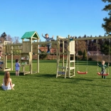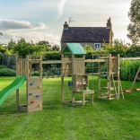 - Tobogan 220 cm (verde), pod cu frânghii, perete de cățărat cu frânghie și 6 prize, 2 leagăne, modul de bucătărie cu „chiuvetă”, cârmă, telescop, sonerie, telefon