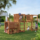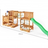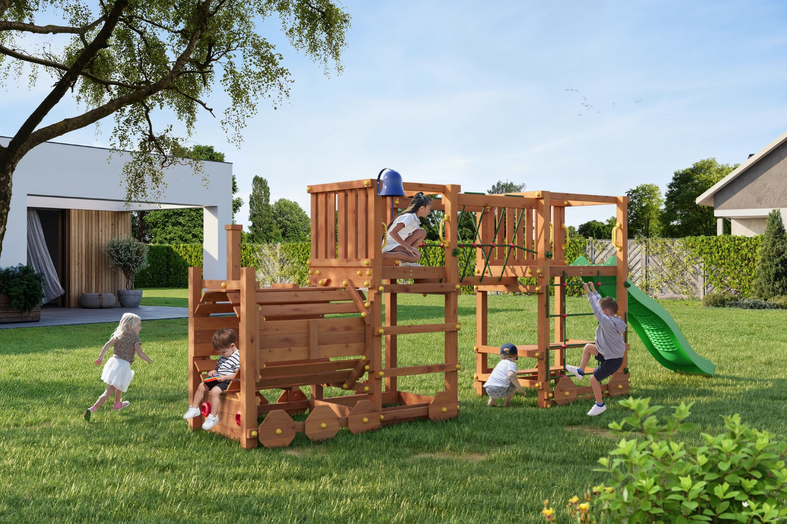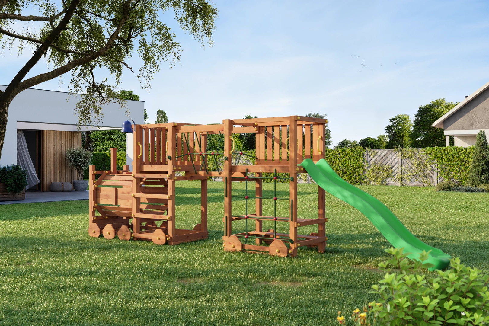 Dotările bine gândite îmbunătățesc agilitatea, echilibrul și abilitățile de coordonare. Podul cu frânghii și plasa de cățărare dezvoltă motricitatea, toboganul de 2,2 m aduce distracție rapidă, iar mânerele și ancorele de sol asigură siguranță în utilizare. Locul de joacă este potrivit pentru grădini private pentru copii de la 3 ani și până la 50 kg per utilizator.