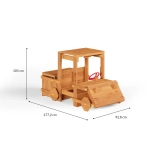 Vehiculul de exterior din lemn GARDEN BUGGY este un element original pentru distracția în grădină, care invită la jocuri de șofer, explorator sau constructor. Execuția realistă, cu „lamă” frontală, volan roșu și cabină acoperită, îi încurajează pe copii la aventuri pline de imaginație – de la safari până la căutarea de comori.