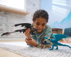 Figurinele sunt realizate din plastic rezistent și concepute pentru fixarea ușoară a călăreței pe spatele dragonului, astfel încât copiii pot reinterpreta scene iconice sau își pot crea propriile aventuri în lumea Berk. Setul extinde perfect colecția Dragons și se poate combina cu alte personaje și dragoni.