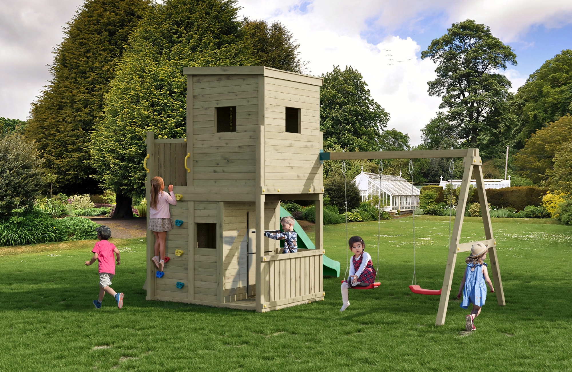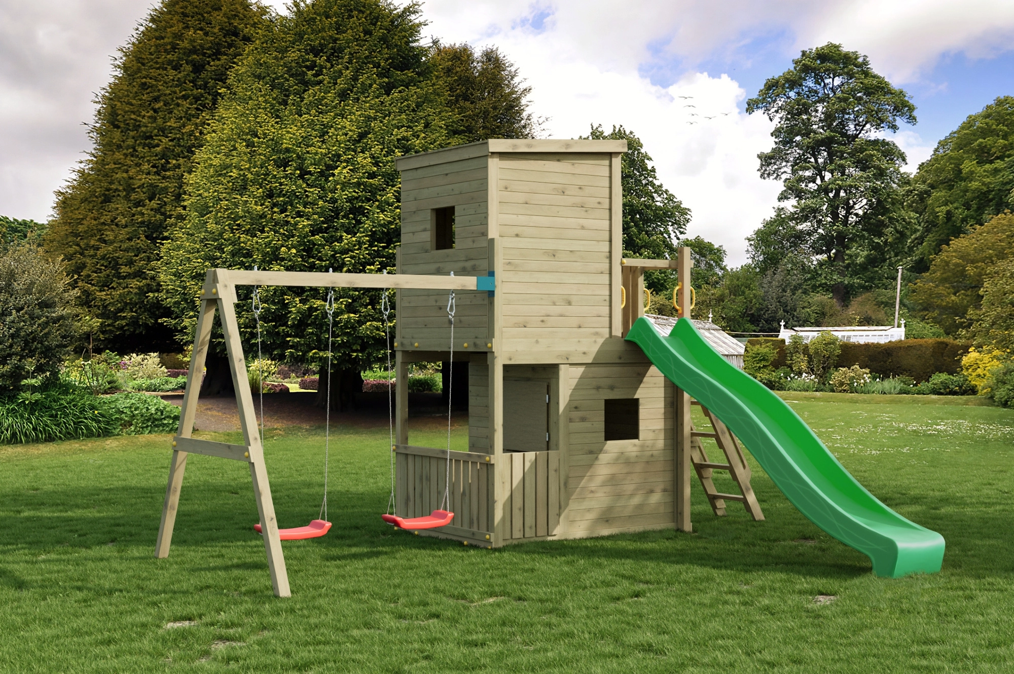- Distracție completă: alunecare, cățărare, legănare și joacă în căsuță