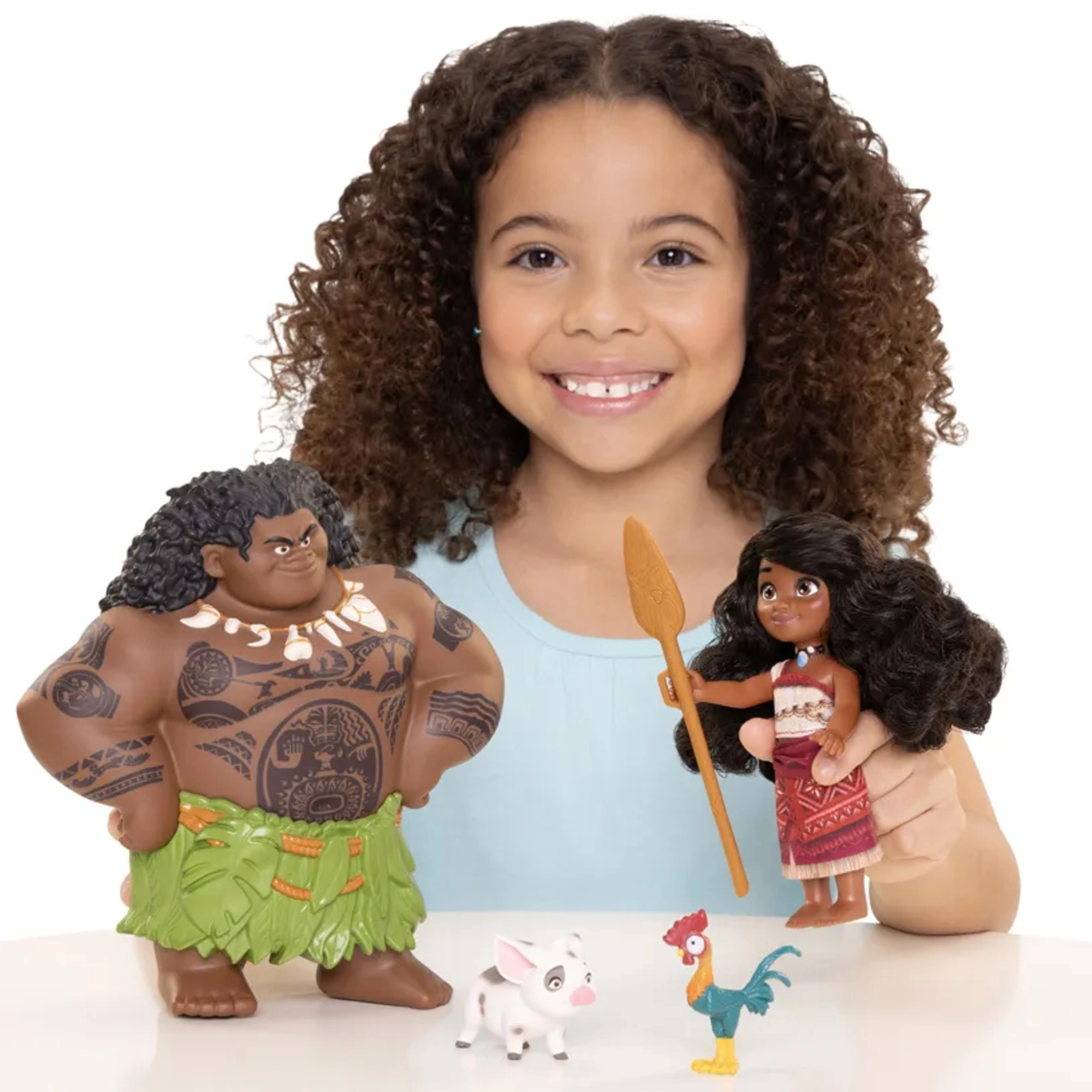 - Set complet de personaje: Vaiana, Maui, purcelușul Pua și cocoșul Heihei.