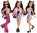 Sunt incluse pantaloni roz sclipitori, top cu buline, fustă argintie, top negru, jachetă roz, încălțăminte, genți și ochelari – combinații nesfârșite de look-uri.