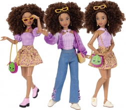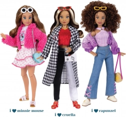 Păpușa are păr creț castaniu ideal pentru pieptănat și styling. În set găsești 2 look-uri complete incluzând topuri, hanorac/cardigan, blugi, fustă, două perechi de pantofi, genți și bijuterii. Atenția la detalii cu motive din povestea O poveste încâlcită și elemente iconice MICKEY oferă setului un aspect original.