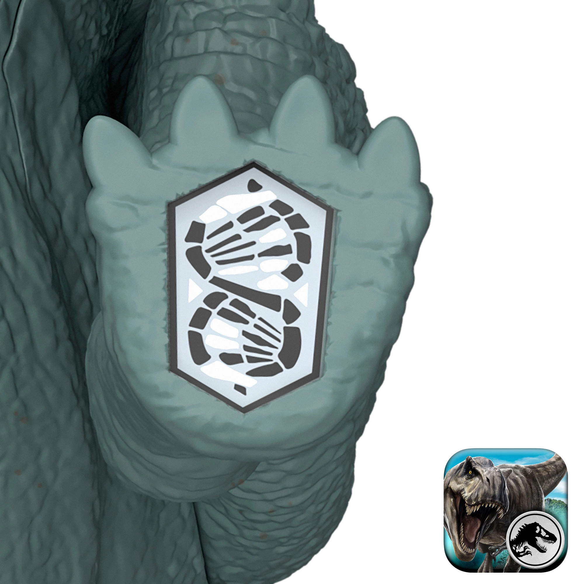 Codul ADN ascuns pe piciorul figurinei poate fi scanat în aplicația gratuită Jurassic World Reborn: Facts (Android/iOS). În mediul AR vei explora modelul scheletic în mod radiografie, vederea termică, conținut educațional și te vei bucura de mini-jocuri precum curse cu dinozauri sau căutare de fosile.