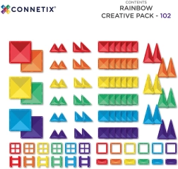Setul CONNETIX Rainbow Creative Pack oferă copiilor o cale ludică de a explora geometria, echilibrul și principiile magnetismului. Piesele colorate și translucide în forme variate se „fixează” datorită magneților puternici și permit construirea de modele 2D și 3D. Ideal pentru joaca acasă, grădinițe, Montessori și terapie senzorială.