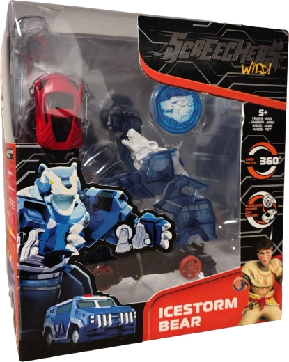 Cu setul transformabil Screechers Wild! Icestorm Bear, copiii se cufundă în urmăriri dinamice prin Zephyr City. Într-o clipă, ursul se transformă într-o mașină albastră rapidă, pregătită să obțină monedele energetice înaintea adversarilor. Părțile mobile realiste și realizarea de efect susțin jocul creativ și dezvoltarea imaginației.