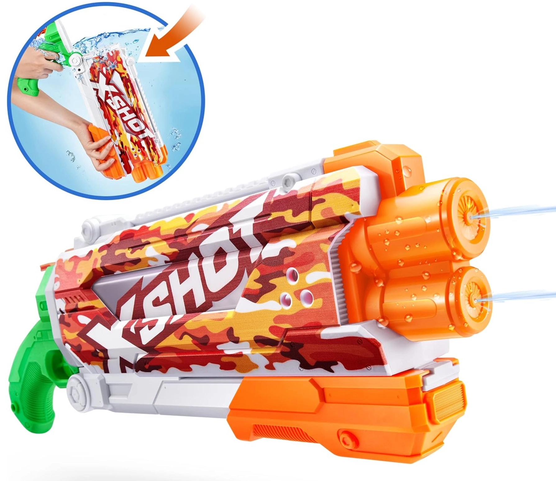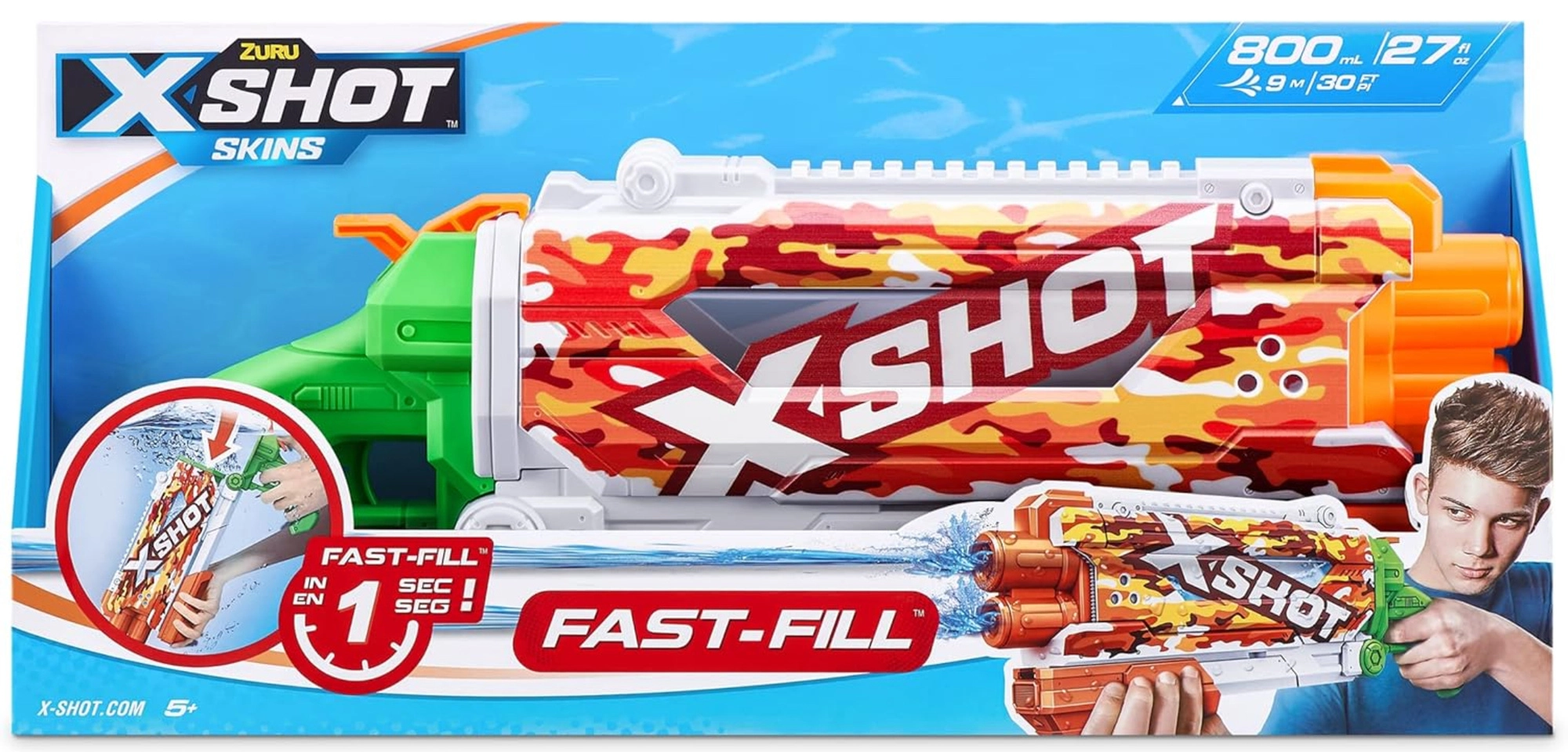 Pistolul cu apă ZURU X SHOT SKINS Fast-Fill Sun Camo oferă reumplere rapidă și un jet puternic pentru distracție maximă. Sistemul inovator Fast-Fill îți permite să reîncarci direct de la robinet sau din găleată în doar o secundă, astfel încât revii rapid în acțiune. Datorită razei de acțiune de până la 10 m, îți vei nimeri adversarii cu precizie și putere.
