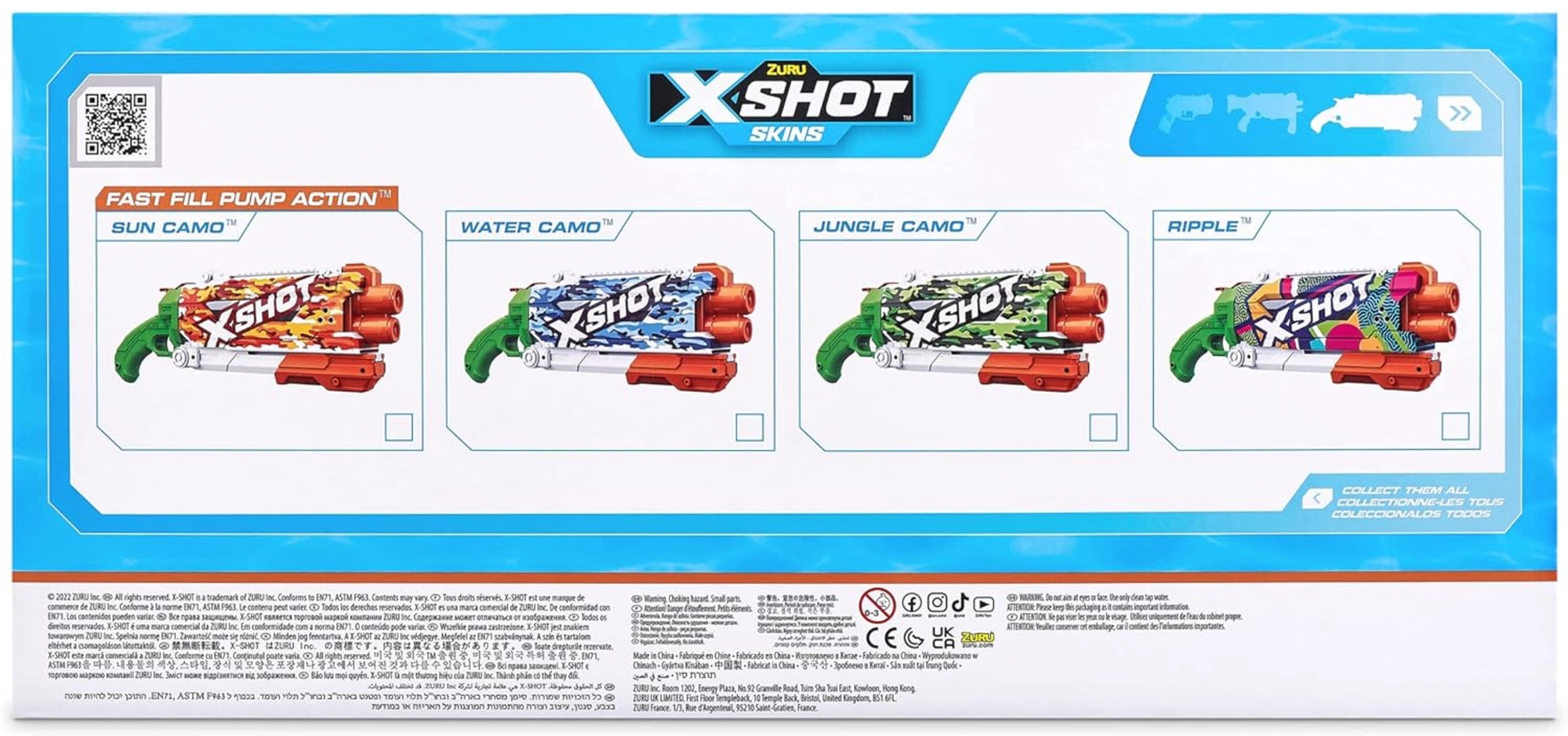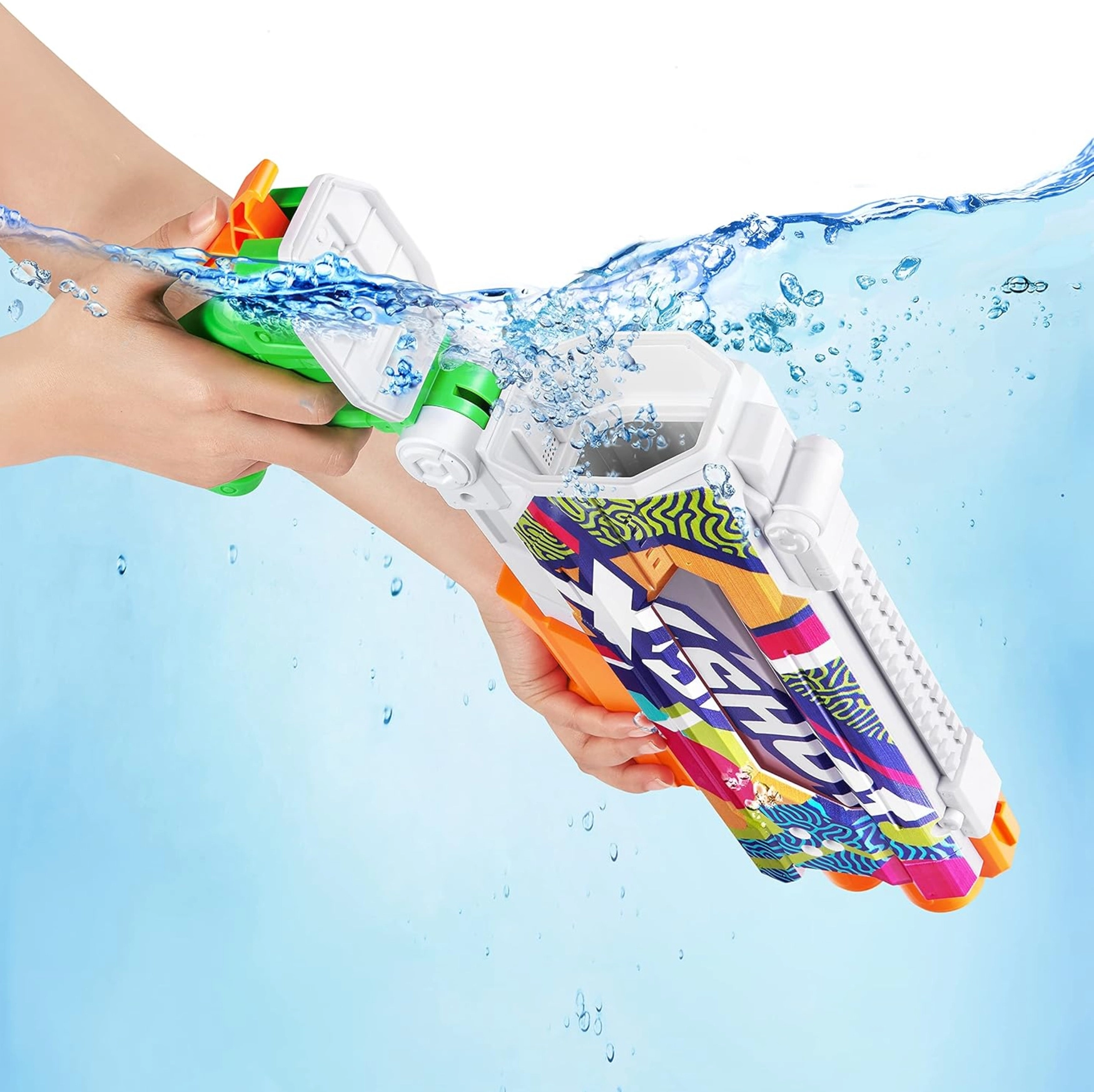 Pistolul cu apă ZURU X-SHOT Skins Fast-Fill Ripple duce bătăliile cu apă la nivelul următor. Cu tehnologia Fast-Fill reumpleți rezervorul în doar o secundă – deschideți, scufundați, închideți și sunteți din nou în joc. Lungimea de 49 cm oferă prindere excelentă, stabilitate și performanță pentru ținte precise.