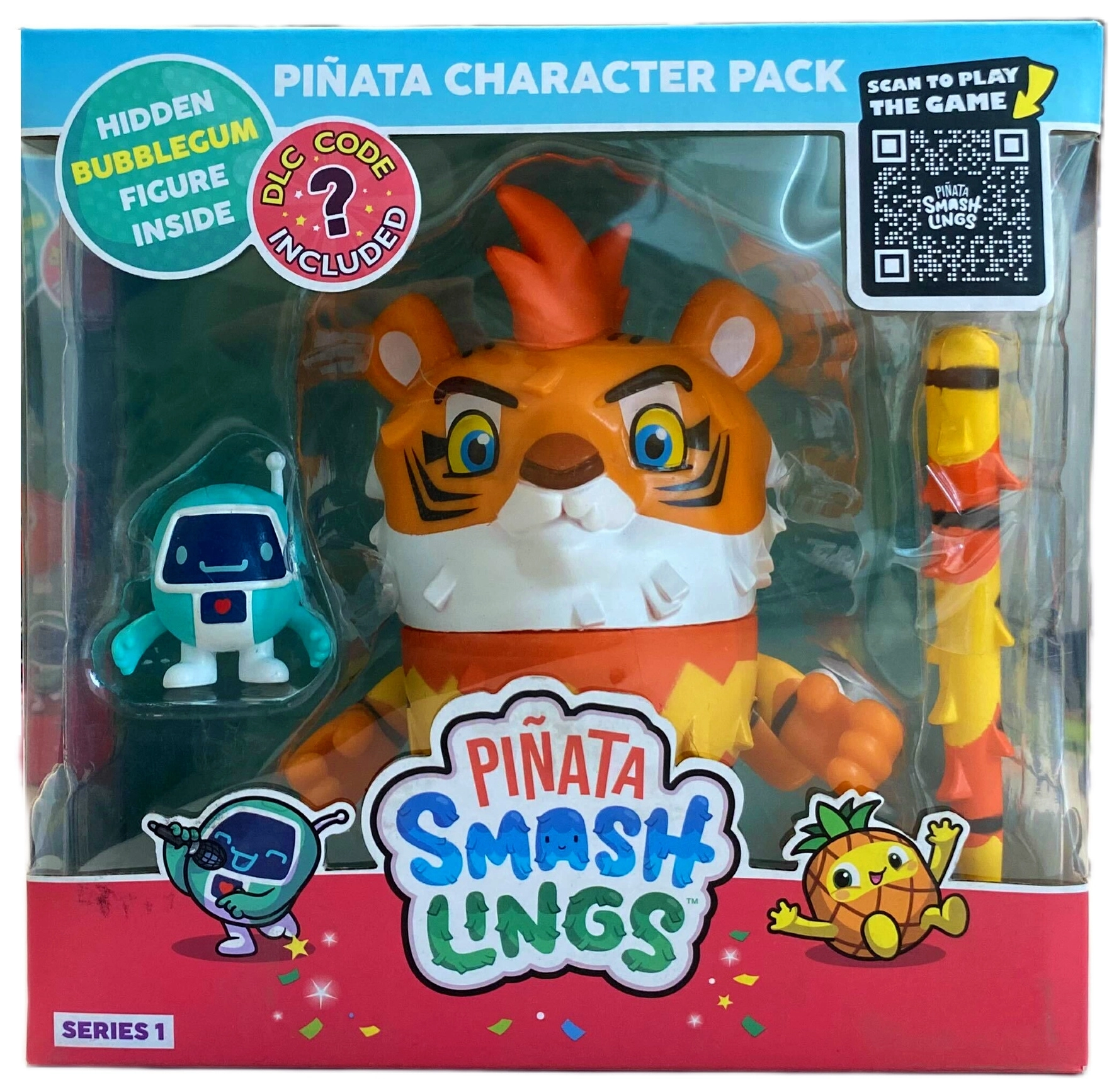 Descoperiți tropicalul Piñataverse, unde din piniatele colorate se nasc energicii Smashlings! Setul cu piniata tigrului Mo aduce o figură mare de piniată (cca 11,5–12 cm) cu surpriză în interior, 2 mini figurine și accesoriu stilat – un băț inspirat de joc. Datorită codului DLC vă extindeți experiența și în lumea recompenselor digitale.