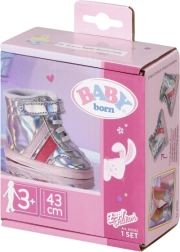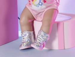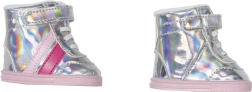BABY born Pantofi sport holografici sunt accesoriul ideal pentru orice mică stilistă. Acești pantofi argintii eleganți cu dungi roz și velcro asigură o încălțare ușoară și completează perfect orice ținută de modă pentru păpuși.