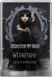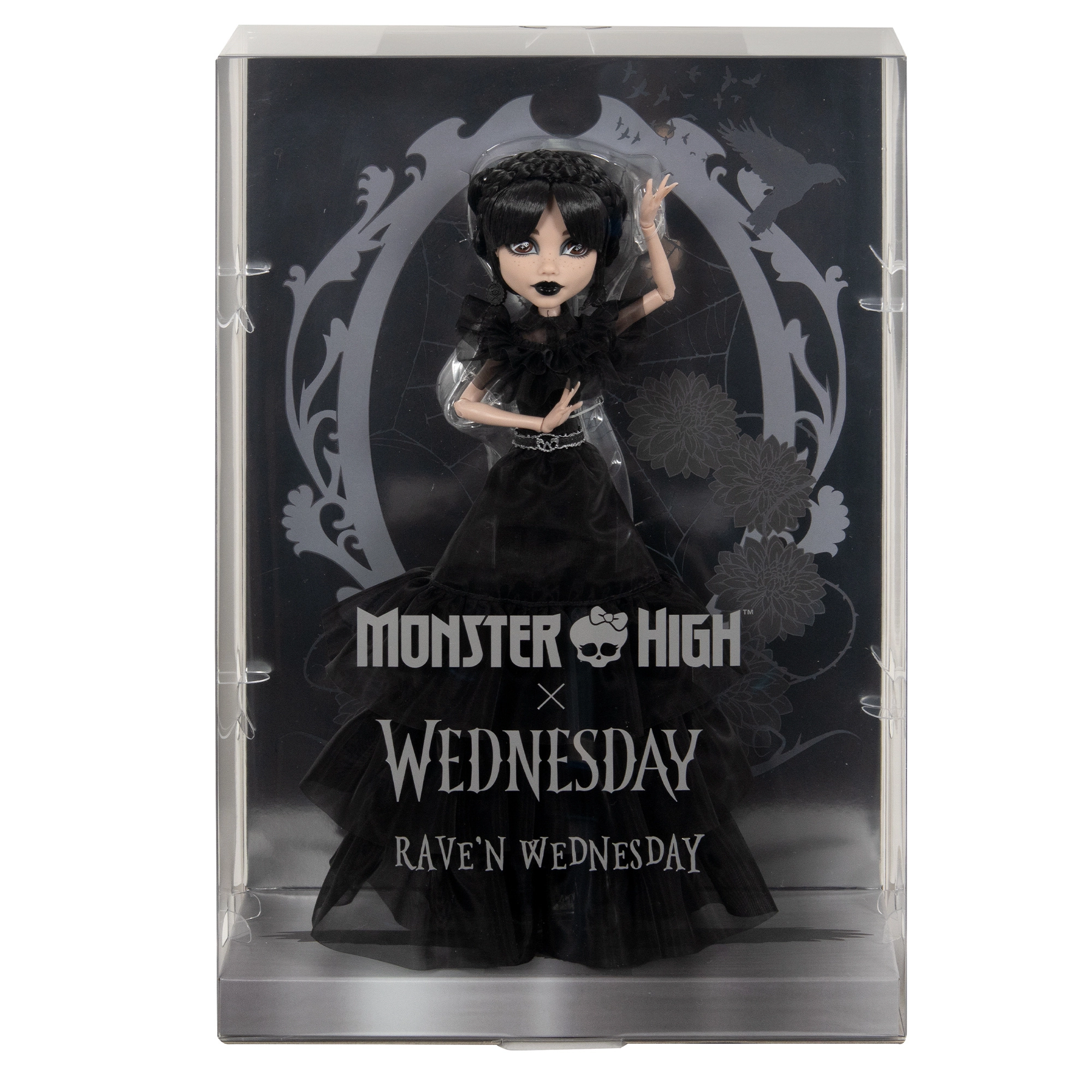 Această păpușă de colecție WEDNESDAY ADDAMS din linia Monster High oferă o redare fidelă a eroinei preferate. Codițe negre lungi, ten pal și privire pătrunzătoare sunt completate de o robie neagră din tul dramatică, cu volane bogate, și de un suport pentru expunere sigură în vitrină.