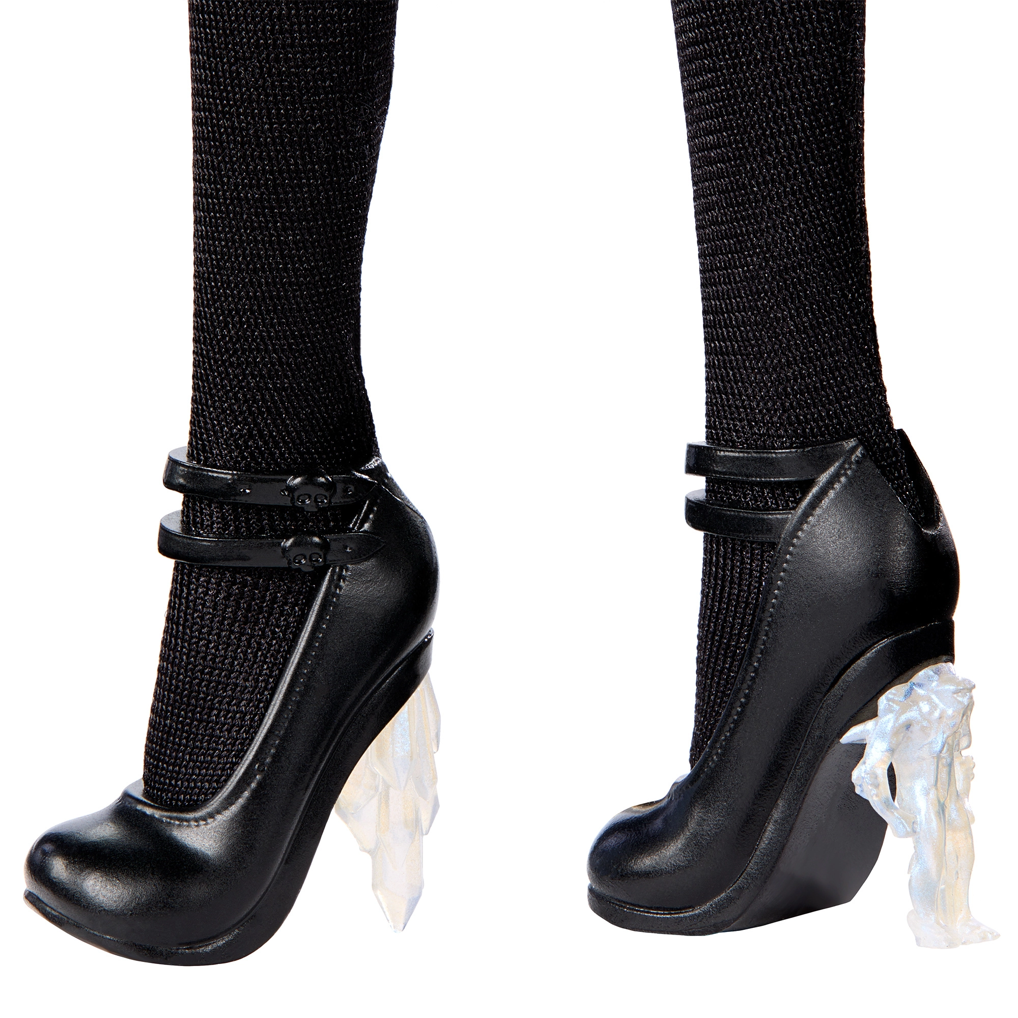 Accesorii elaborate, precum curea argintie, cercei și pantofi cu tocuri cristaline, evidențiază stilul gotic și transformă păpușa într-o piesă remarcabilă pentru orice colecție. Datorită brațelor și picioarelor articulate, poate adopta cu ușurință diverse pozii – ideală pentru fotografiere și expunere.