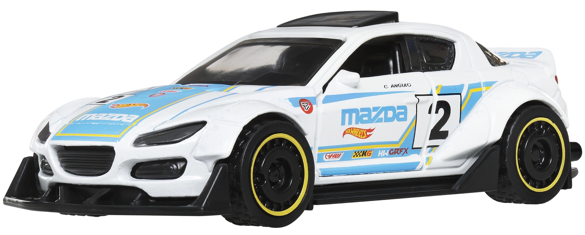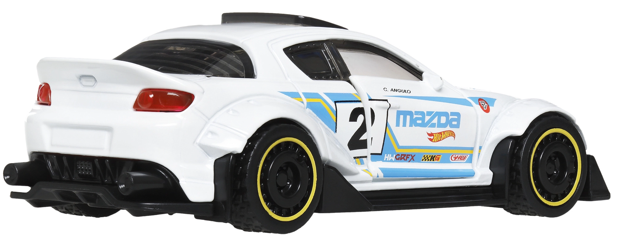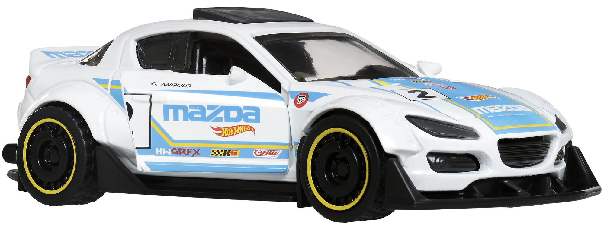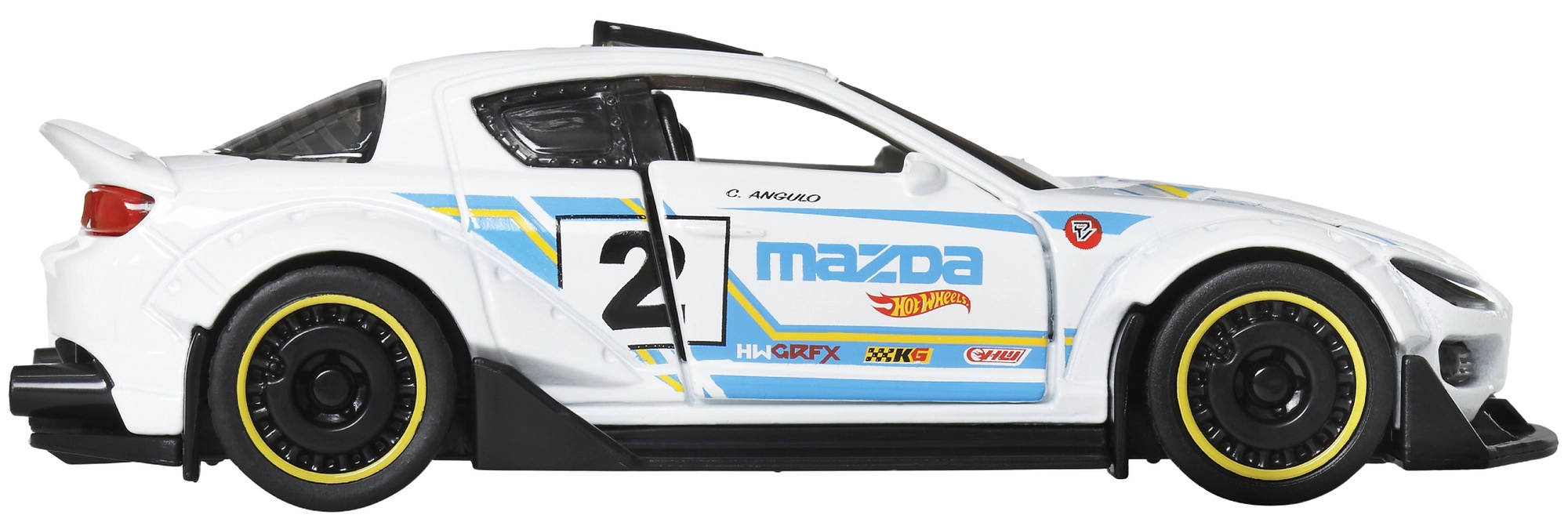 Descoperiți mașinuța de curse stilată HOT WHEELS 2004 Mazda RX-8 Custom cu dinamicul mecanism pull-back. Scara mai mare 1:43 aduce mai multe detalii, manevrabilitate mai bună și distracție pentru fanii vitezei mari, mici și mari deopotrivă.