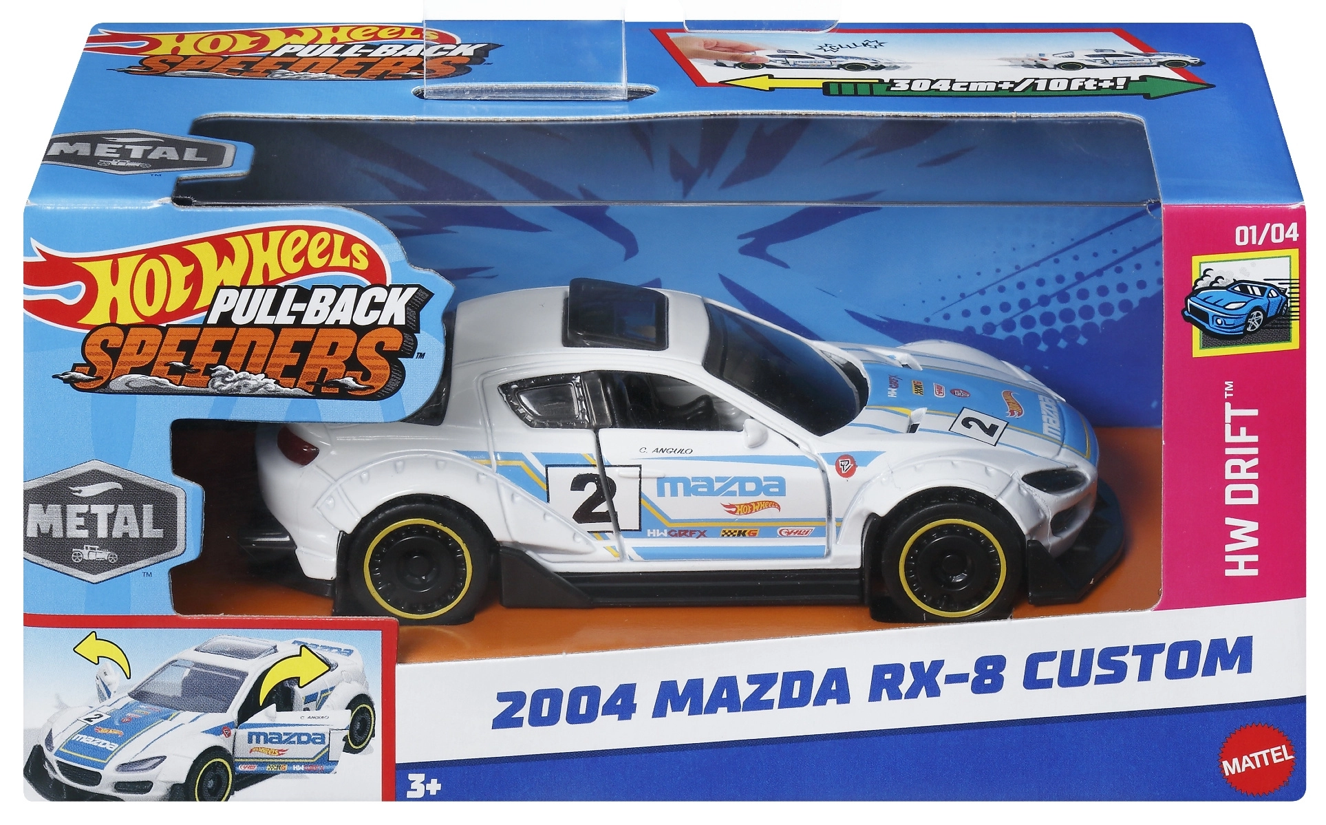 Trăiți o cursă plină de acțiune cu mașinuța HOT WHEELS 2004 Mazda RX-8 Custom din seria Pull-Back Speeders, la scara 1:43. Datorită mecanismului de întoarcere (pull-back), este suficient să trageți mașina înapoi și să o eliberați – va porni înainte cu o viteză impresionantă. Modelul atrage prin caroseria albă, grafica de curse și detalierea atentă, are roți cu rotație liberă și este ideal pentru joacă și colecționare.