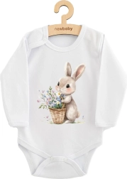 Body pentru copii drăguț și confortabil din 100% bumbac natural, cu imprimeu original cu iepuraș și floricele. Materialul moale și respirabil este blând cu pielea sensibilă, iar închiderea practică cu capse pe umăr și între piciorușe ușurează îmbrăcarea și schimbarea scutecului. Imprimeul sigur, cu certificare OEKO-TEX STANDARD 100, garantează calitate și confort în fiecare zi.