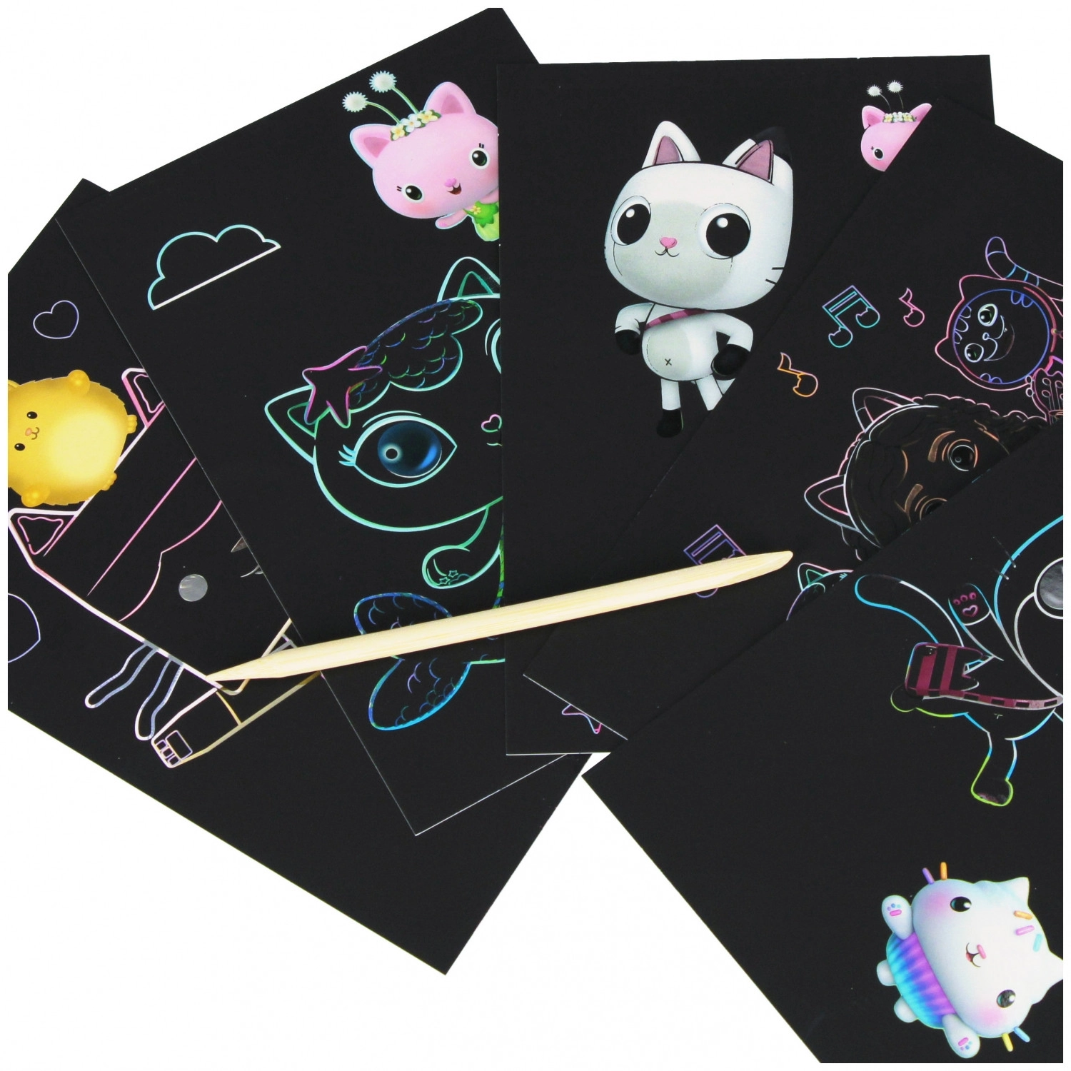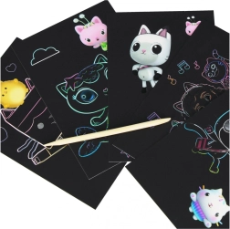 Setul de zgâriere Gabby's House oferă copiilor ore întregi de distracție creativă. Cu ajutorul stylusului inclus, pot dezvălui straturi colorate și pot crea motive unice inspirate din lumea Gabby's House. Datorită dimensiunilor compacte, setul este potrivit pentru călătorii, grădiniță și acasă.