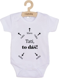 Body confortabil pentru copii, cu mânecă scurtă și inscripția originală „Tati, poți!” de la marca NEW BABY. Fabricat din 100% bumbac moale și respirabil, delicat cu pielea sensibilă. Închidere cu capse la umeri și între piciorușe, pentru a facilita schimbatul și îmbrăcatul. Culori certificate și material cu OEKO-TEX STANDARD 100 pentru purtare în siguranță chiar și pentru nou-născuți.