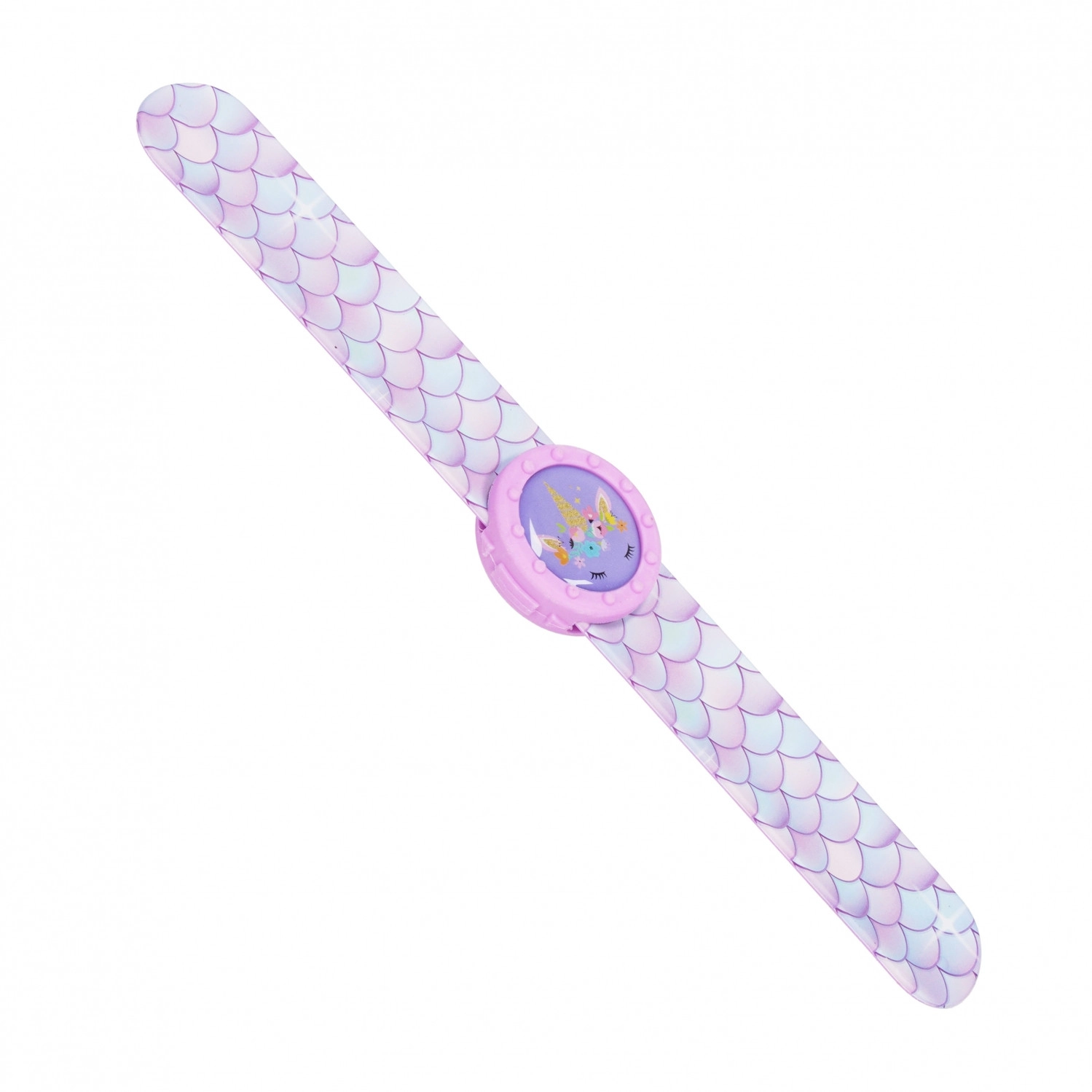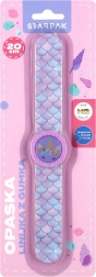 Ceas-ruleta roz combină distracția și utilitatea într-un singur accesoriu. Datorită materialului flexibil din silicon, este durabil, plăcut la atingere și sigur pentru utilizarea de către copii. Designul cu „cadran” din cauciuc transformă brățara într-un accesoriu ludic pe care copiii îl au mereu la îndemână – și odată cu el și rigla de 21,5 cm.