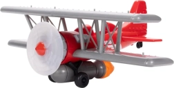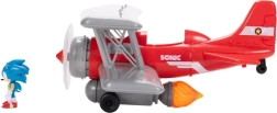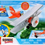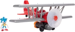 Biplan roșu cu aripi gri și elice proeminentă în față. Sonic poate sta în cockpit sau pe aripă – pregătit pentru orice misiune de acțiune.