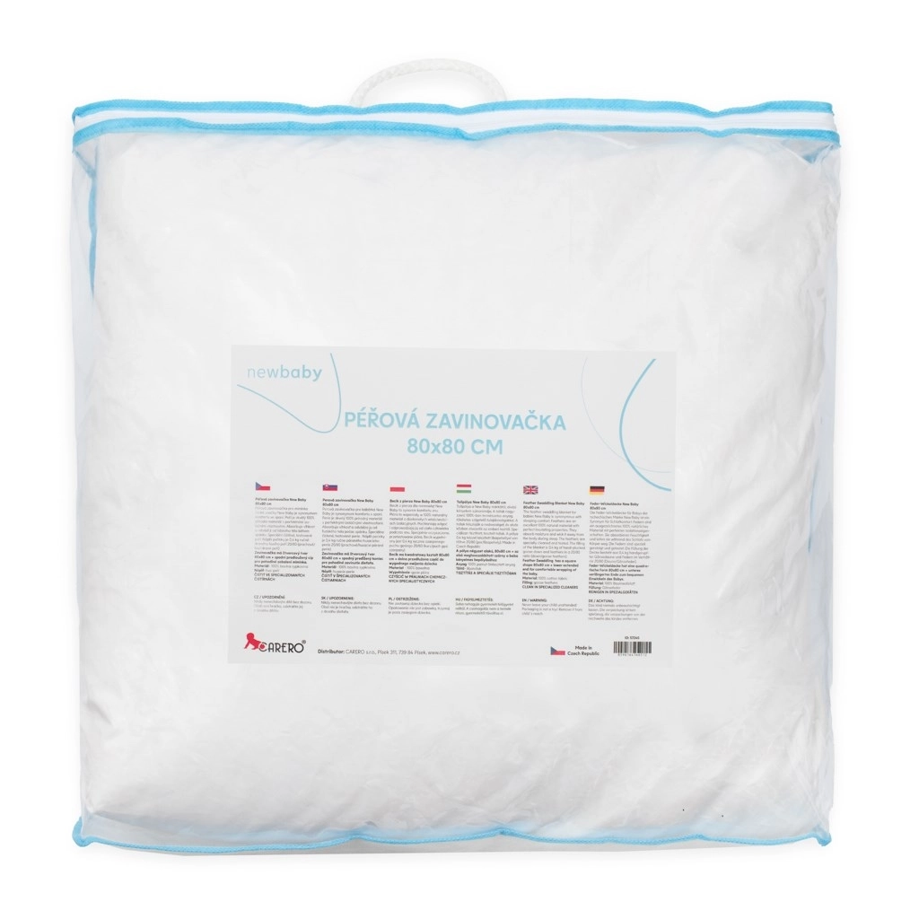 Acest scutec înfofolitor din puf, de lux, cu dimensiunile 80 × 80 cm este conceput pentru înfășarea sigură și confortabilă a nou-născutului. Datorită pufului special curățat și testat, menține căldură plăcută fără supraîncălzire și oferă bebelușului o senzație de siguranță. Poate fi folosit și ca cuvertură ușoară tip plapumă.