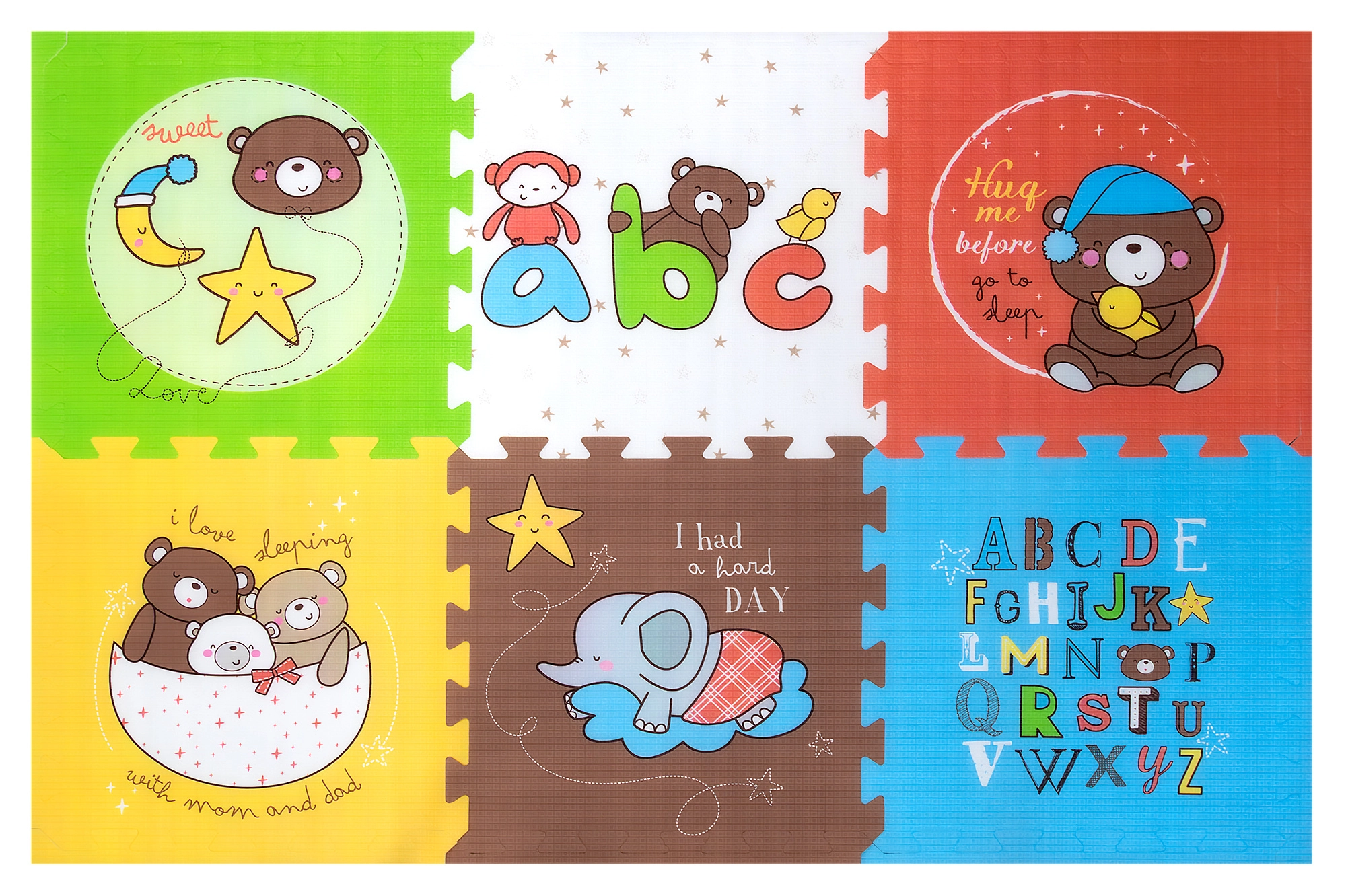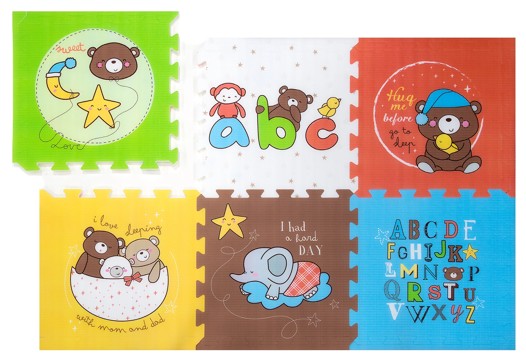 Piesele puzzle de mari dimensiuni, cu ilustrații simpatice cu animăluțe și alfabet (fără semne diacritice speciale), dezvoltă imaginația și susțin învățarea timpurie. Covorașul se întreține ușor – este suficient să-l ștergeți cu o cârpă umedă. Piesele sunt pe o singură față; partea inferioară poate prezenta imperfecțiuni de fabricație care nu afectează funcția.