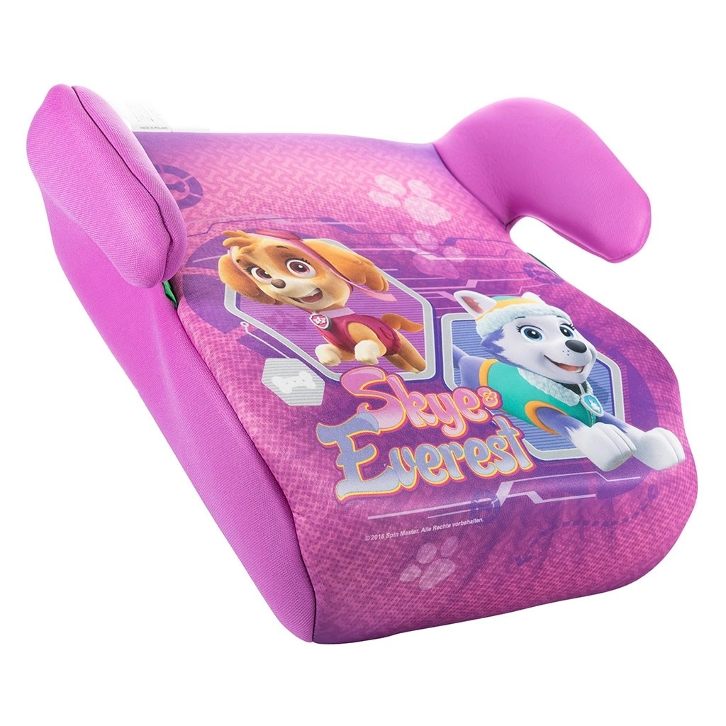 Înălțătorul roz, stilat, cu personajele PAW PATROL Skye și Everest asigură copilului dumneavoastră poziționare corectă și confort la fiecare drum. Este destinat exclusiv vehiculelor cu centuri de siguranță în 3 puncte, iar datorită aprobării ECE/UN Regulation No. 129 (R129) oferă protecție sporită la impacturi frontale și laterale.