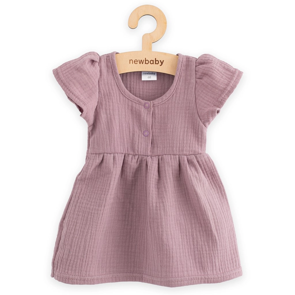 Rochițele muselin ușoare și respirabile New Baby pentru bebeluși încântă prin materialul delicat și croiala lejeră în A. Au mânecă scurtă, fustiță încrețită și închidere practică în față pentru îmbrăcare ușoară. Din bumbac 100% plăcut, cu certificare OEKO-TEX STANDARD 100, sunt fine, aerate și ideale pentru vară.