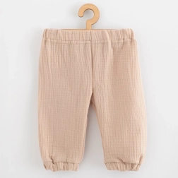 Set din 2 piese din muselin pentru bebeluși, stilat și practic, de la brandul New Baby. Setul include un tricou cu mânecă scurtă cu închidere cu capse la gât și pantaloni comozi cu elastic moale în talie și la tivul picioarelor. Fabricat din 100% bumbac muselin, respirabil, ideal pentru zilele de primăvară și vară. Certificarea OEKO-TEX STANDARD 100 garantează siguranța pentru pielea sensibilă a copiilor.