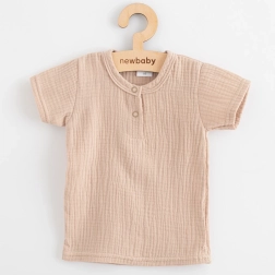 Set pentru bebeluși din muselină, stilat și practic, format din 2 piese de la New Baby. Conține tricou cu mânecă scurtă și pantaloni cu talie confortabilă. Din bumbac de calitate, respirabil, ideal pentru primăvară și vară. Muselină moale, respirabilitate, croială confortabilă și certificare OEKO-TEX STANDARD 100 pentru siguranța pielii delicate a copiilor.