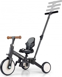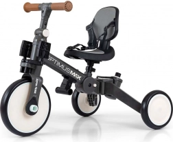 Tricicleta și bicicleta de echilibru 5‑în‑1 pentru copii MILLY MALLY Optimus Max crește odată cu copilul tău, de la 12 luni. Oferă o construcție stabilă, șa confortabilă, tapițată și tijă de ghidare cu 4 trepte de reglare, astfel încât poți ajuta și controla în siguranță. Roți din spumă pentru rulare silențioasă, înălțime și distanță a șeii reglabile, centuri de siguranță în 3 puncte și roți spate pliabile pentru confort și siguranță. Se transformă ușor din tricicletă în bicicletă de echilibru, în funcție de abilitățile copilului.