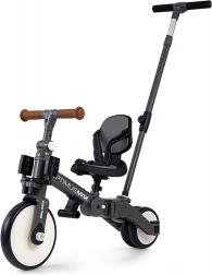 Părinții vor aprecia tija de ghidare reglabilă pe înălțime pentru ghidare facilă pe teren mai dificil sau atunci când copilul este obosit. Copilul se va bucura de pedalele de pe roata din față (pot fi depozitate în suportul de pe coloana ghidonului) sau va folosi suporturile pentru picioare de sub cadru. Produsul susține dezvoltarea motricității, coordonării și echilibrului și îi pregătește pe cei mici pentru mersul pe o bicicletă adevărată.