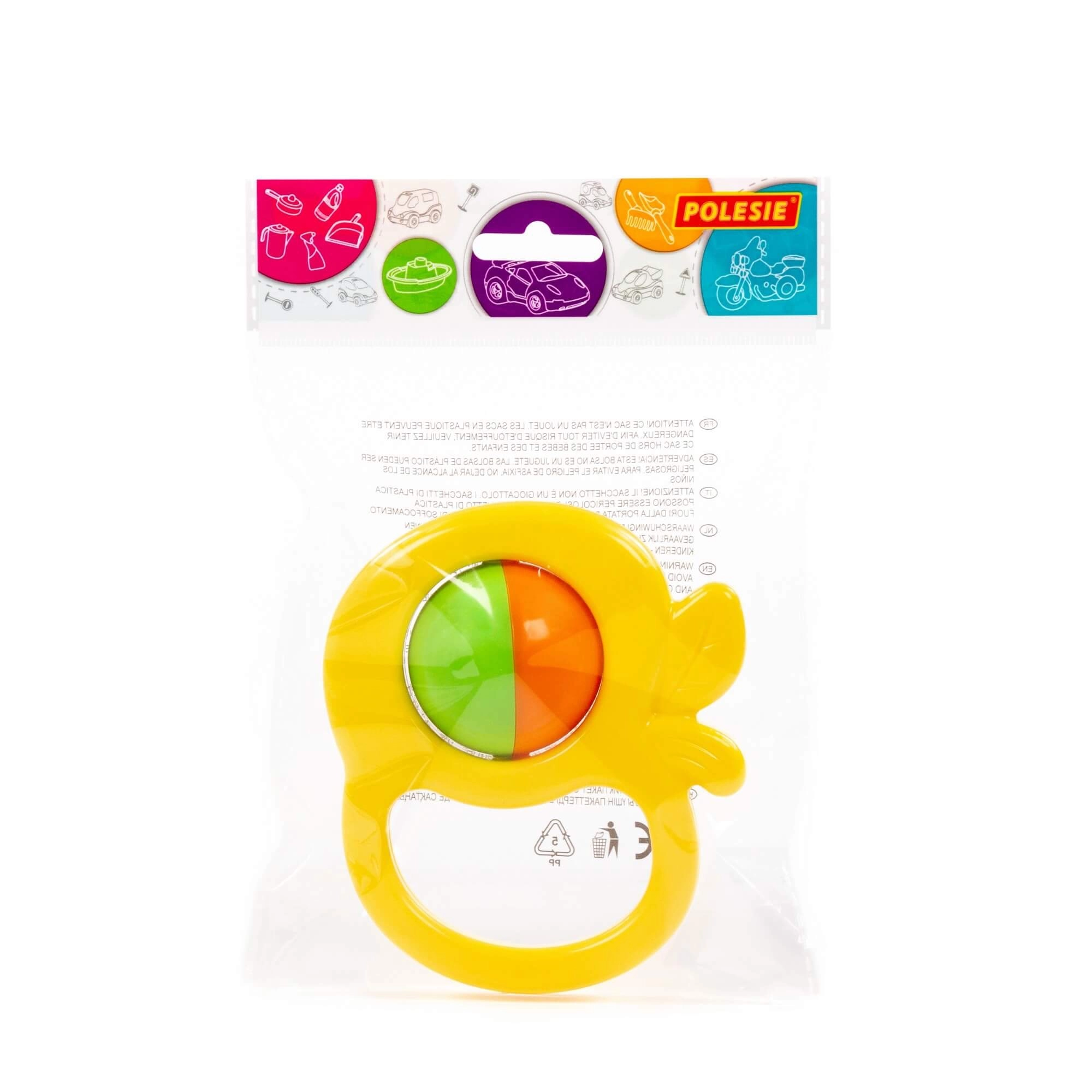 Biluța bicoloră din interior se rotește și zornăie în mișcare, stimulând auzul și percepția vizuală.