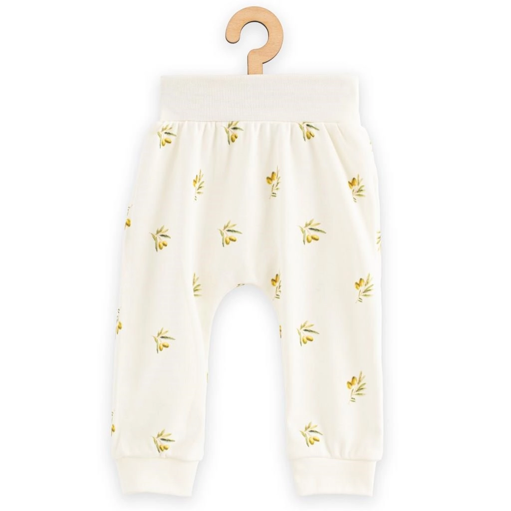 Acești pantaloni pentru copii sunt fabricați din 100% bumbac organic (bio), deosebit de plăcut la atingere și respirabil. Imprimarea integrală cu măsline oferă un aspect modern, în timp ce benzile elastice mai late din talie și de la manșete mențin pantalonii confortabil pe poziție fără a strânge.