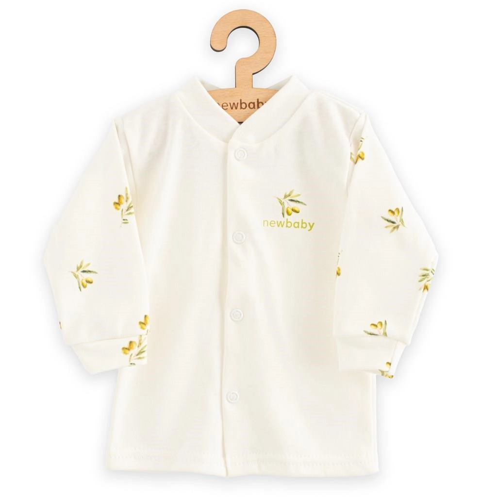 Jachetă stilată pentru bebeluși NEW BABY cu motiv de măsline, confecționată din bumbac organic fin, blând cu pielea sensibilă a bebelușilor. Închidere practică cu capse pe toată lungimea pentru îmbrăcare și schimbare ușoare. Material moale, respirabil și plăcut la atingere pentru confort pe tot parcursul zilei.