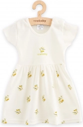 Rochiță adorabilă pentru bebeluși New Baby Olive din 100% bumbac organic, ușoară, delicată cu pielea copiilor și decorată cu un print jucăuș cu măsline. Pentru îmbrăcare ușoară are închidere cu capse și respectă certificarea strictă OEKO-TEX STANDARD 100.