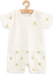 Salopetă de vară stilată pentru bebeluși New Baby cu mânecă scurtă și imprimeu cu măsline, confecționată din 100% bumbac organic. Datorită închiderii tip parte peste parte pe lateral, cu șnururi și capse, și capsele practice dintre piciorușe, se îmbracă și se schimbă cu ușurință. Elasticurile fine la terminația pantalonului nu strâng și asigură confort pe tot parcursul zilei. Certificarea OEKO-TEX STANDARD 100 confirmă blândețea față de pielea delicată a copiilor.