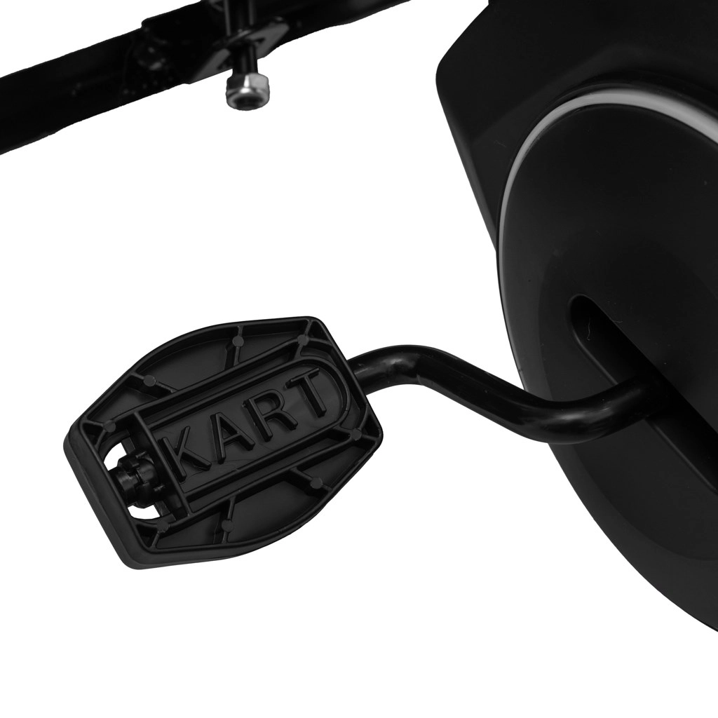Kartul este proiectat cu accent pe siguranță și confort: lanțul complet acoperit protejează mâinile copiilor, frâna manuală oferă siguranță la frânare, iar scaunul reglabil asigură poziția corectă în timpul mersului. Roțile EVA silențioase, cu diametrul de 25 cm, atenuează denivelările și permit o funcționare lină, fără zgomot inutil.
