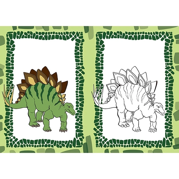 Descoperă lumea creaturilor preistorice cu o practică carte de colorat în format A5. Caietul oferă 9 imagini alb-negru pentru colorat și 9 modele color pentru inspirație ușoară și dezvoltarea creativității copiilor.