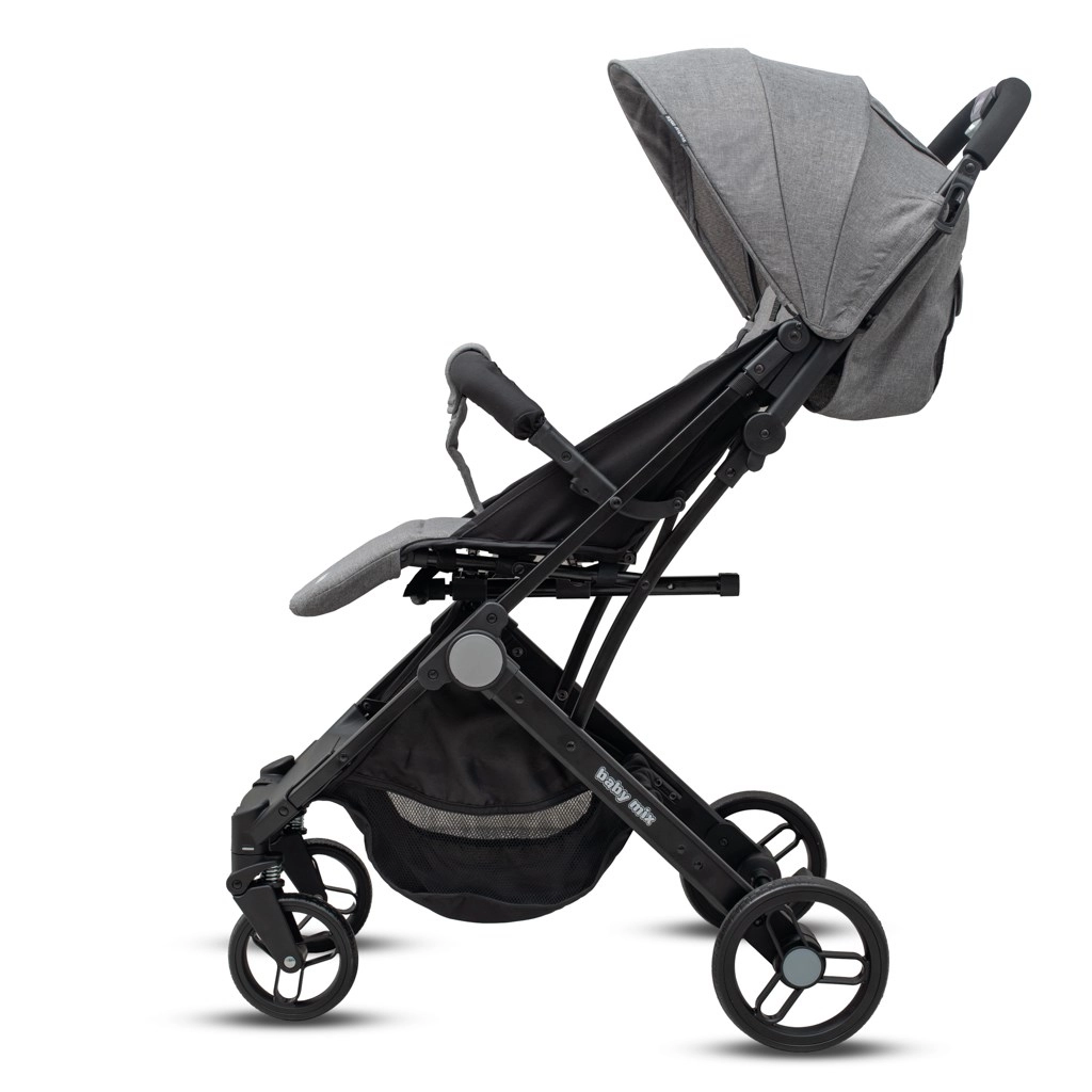 Căutați un cărucior care face față atât orașului, cât și călătoriilor? Bimelo Baby Mix, cu o greutate de doar 7,4 kg, îmbină designul modern, funcționalitatea și siguranța. Dimensiunile compacte după pliere și posibilitatea de a trage căruciorul de mânerul integrat ca pe un troler îl fac un partener excelent de călătorie.