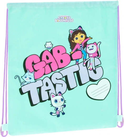 Săculeț textil practic cu motivul Gabby's Dollhouse, ideal pentru grădiniță, activități extracurriculare și timpul liber. Oferă închidere rapidă cu șnururi, este ușor și are utilizare universală pentru copii de la 3 ani.